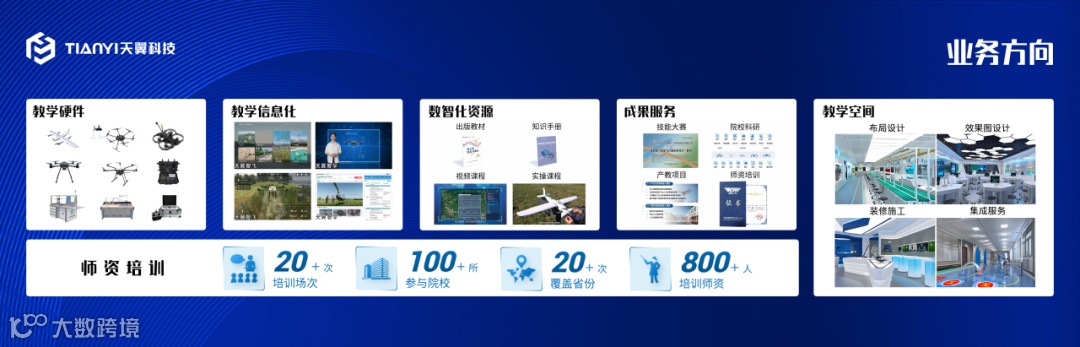 天翼科技展位上,以“低空经济背景下无人机专业建设”为主题的展示内容,集中展示了天翼科技在“五金”建设、教学资源、赛事支持、职教出海等各个板块的最新成果。