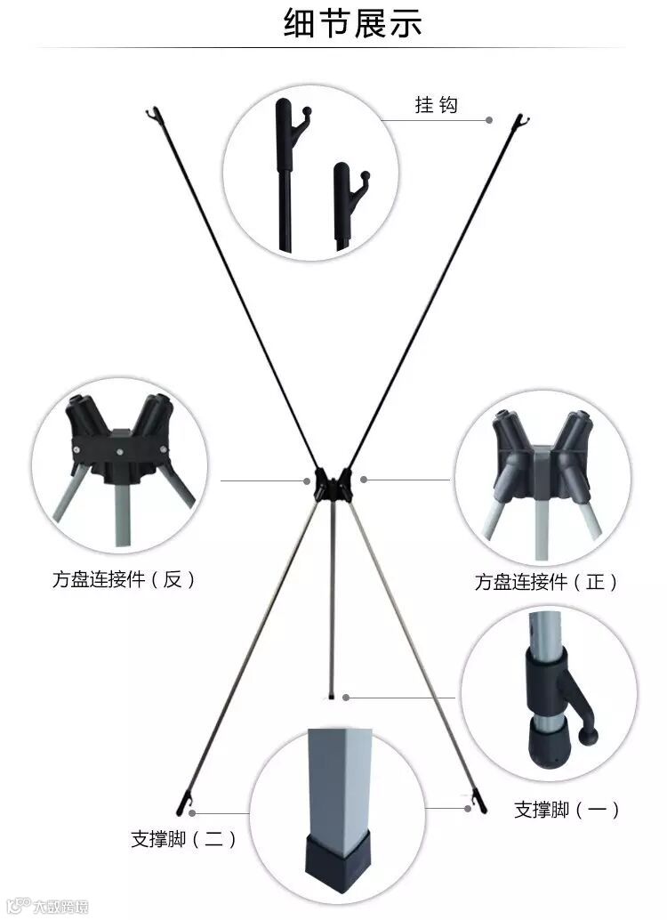 材料说明:铝合金底座,3节支撑杆,画面采用PP合成纸写真