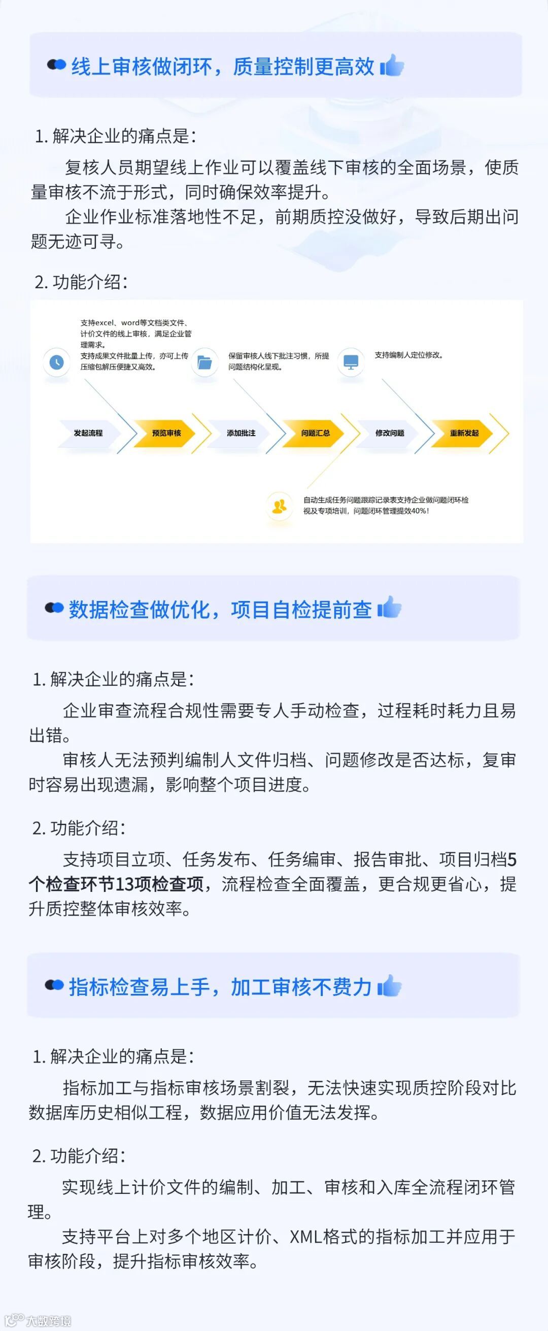 2024年3月,广联达数字新咨询生产力平台全面上线精细化质控管理一体化解决方案,旨在帮助咨询企业有效落地质控标准,提高三级复核效率,让内部质控复盘有抓手,解决管理流于形式、企业作业标准落地性不足,导致复核效率低下、成果文件分组混乱的问题。