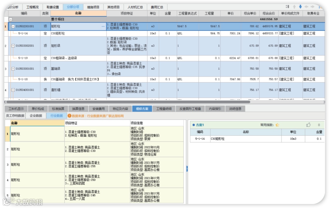 选中清单进入【组价方案】→智能算法推荐最优组价方案→双击应用组价方案。