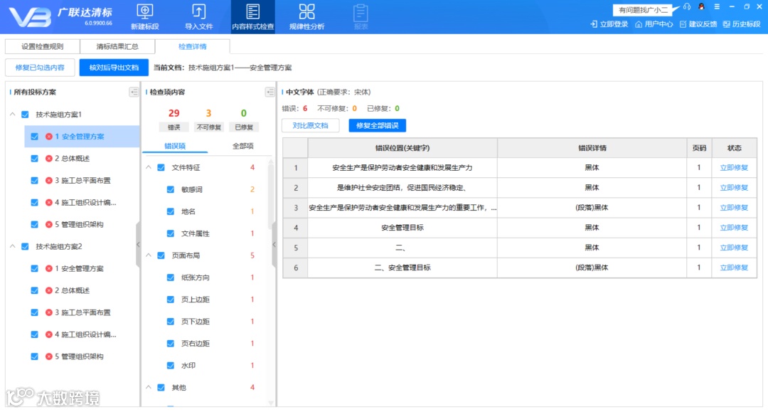 ①样式检查:覆盖全国暗标规则,批量检查文档格式。