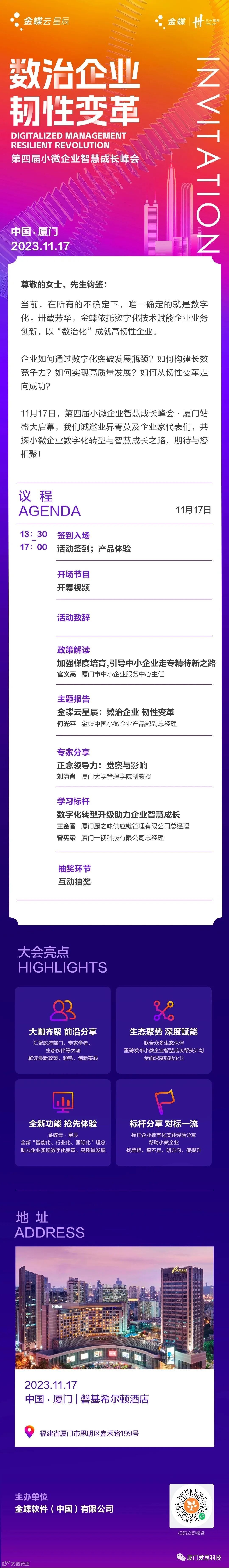 小微企业如何通过数字化突破发展瓶颈?如何构建长效竞争力?如何实现高质量发展?如何从韧性变革走向成功?由金蝶主办的第四届小微企业智慧成长峰会或将给出答案!
