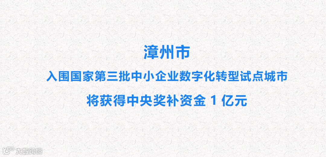 市入围国家第三批中小企业数字化转型试点城市,将获得中央奖补资金1亿元。