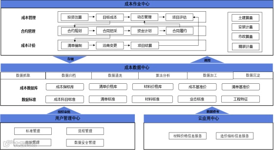面向建设方精细化管理的诉求,数字新成本解决方案以企业成本数据积累与应用的闭环打通为核心,赋能企业数据资产化、作业高效化、决策智能化,方案以企业授权中心、成本数据中心、成本作业中心为整体架构,实现数据资产上的自动沉淀、业务上的全过程数据打通、管理上的数据动态实时统计,解决企业成本标准落地难、成本编制效率低、动态成本数据统计难等业务问题,助力建设方达成成本精细化管理的目标。