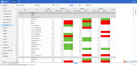 3、投标方在线报价后,平台可直接进行清标工作。通过平台进行清标分析,可以减少拼表对比、检查公式链接、清单格式等工作,效率提升50%。清标结果直观清晰,所有超出范围的数据都会有颜色标识。快速找到差异项,准确性全面性提升30%。