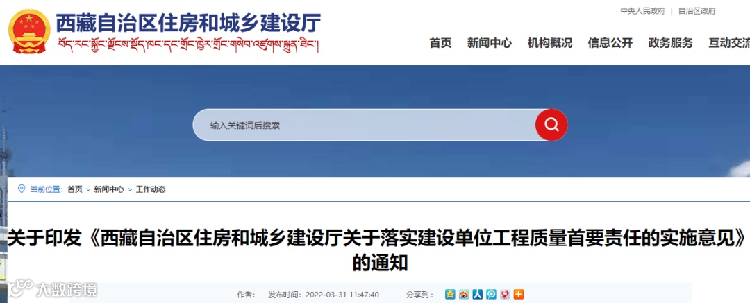 2022年3月31日,西藏住建厅关于印发《西藏自治区住房和城乡建设厅关于落实建设单位工程质量首要责任的实施意见》的通知,提出: