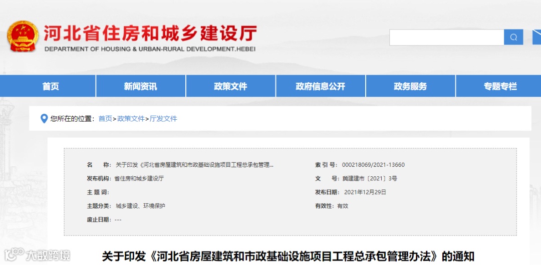 河北省住建厅印发《河北省房屋建筑和市政基础设施项目工程总承包管理办法》,自2022年3月1日起施行。