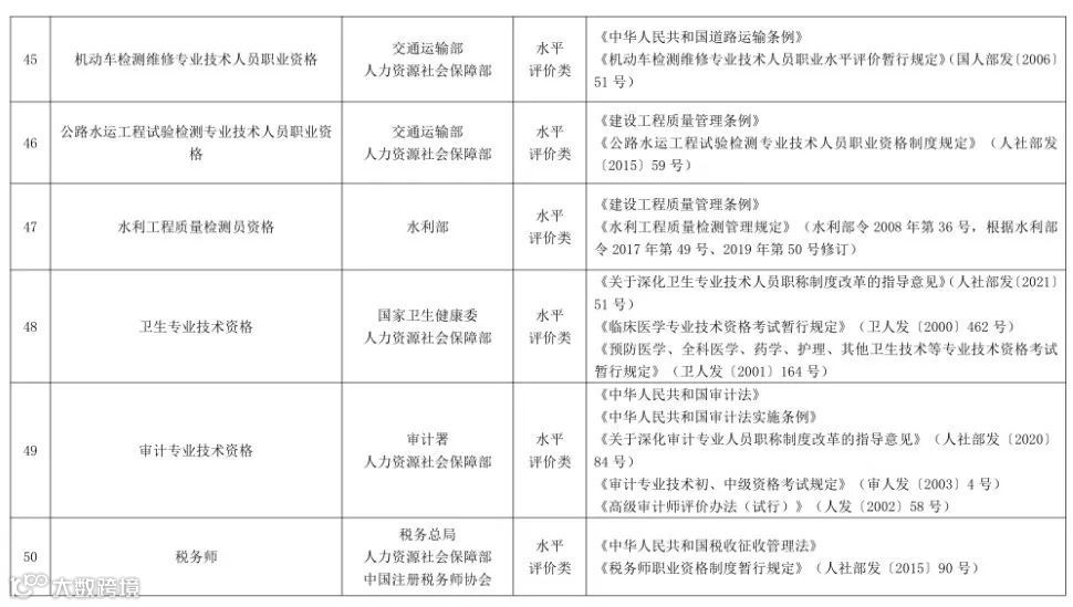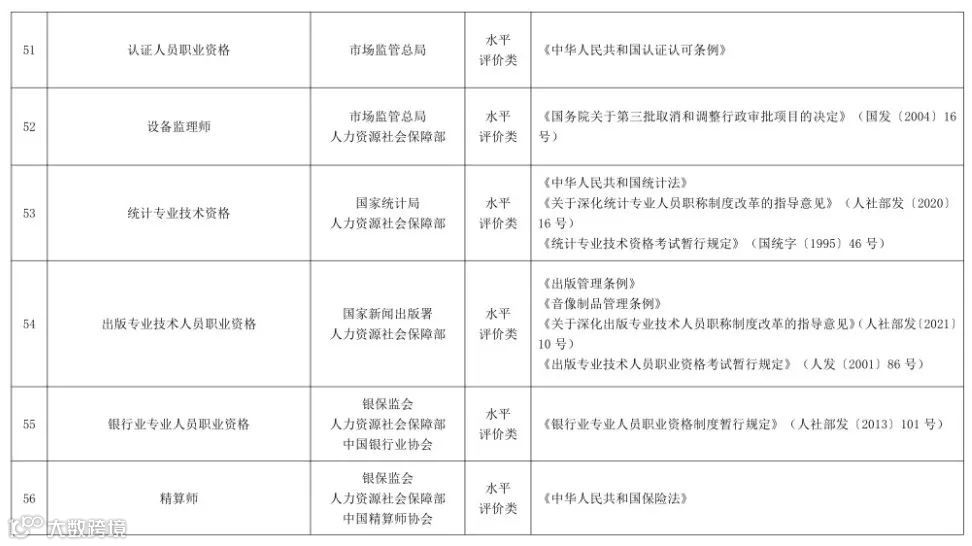 2021年版国家职业资格目录共计72项职业资格。其中,专业技术人员职业资格59项;技能人员职业资格13项。