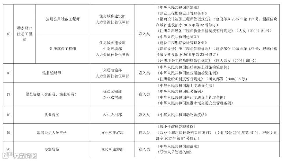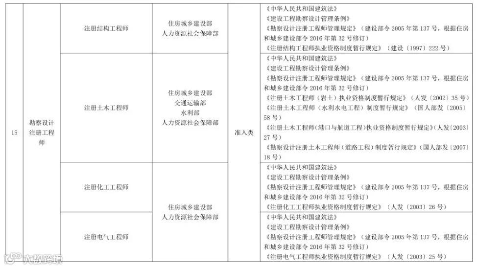 “出入境检疫处理人员资格”、“乡村兽医资格”和勘察设计注册工程师下的“注册石油天然气工程师”“注册冶金工程师”“注册采矿/矿物工程师”“注册机械工程师”退出目录。 -