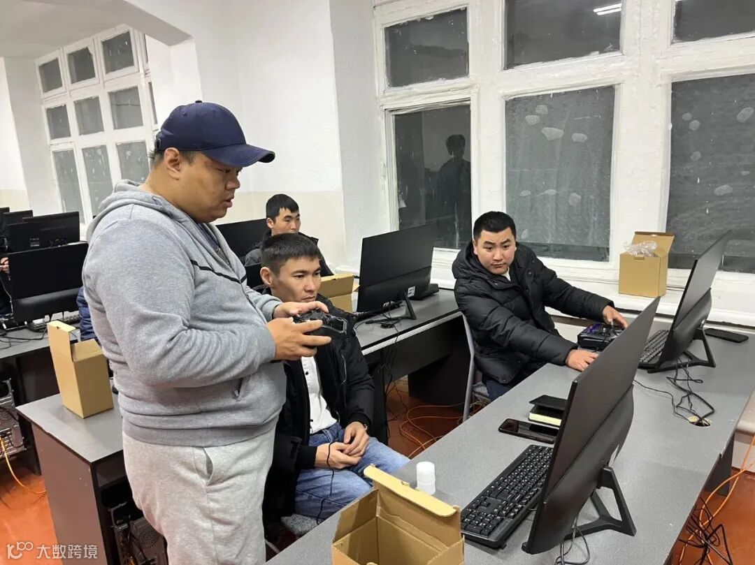 陕职中吉“秦岭工坊”项目中,吉尔吉斯斯坦学生在中方教师的指导下学习无人机应用技术课程。(图:陕西职业技术学院)