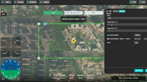 盲飞训练,在设定目标点后,系统出现遮罩,通过仪表盘、航向角、距家距离等参数,将无人机飞回起飞点。