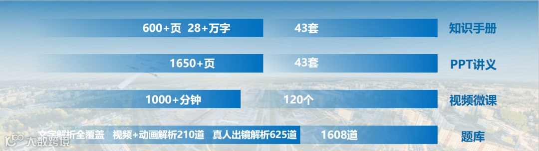学员端课程资源体系覆盖全链路学习场景,配备43套知识手册+配套PPT(超600页/28万余字+1650页课件)、120节视频微课(1000+分钟),并搭建1608道智能题库,实现文字解析100%覆盖,其中625道配备真人实操讲解,210道以视频动画拆解难点,构建“图文-影像-实操演示”多模态解析体系。