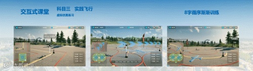 实践飞行仿真训练内容分为悬停训练和8字训练,其中悬停训练又分为通道训练、八面悬停训练和360°自旋训练,学员可依次循序渐进练习。
