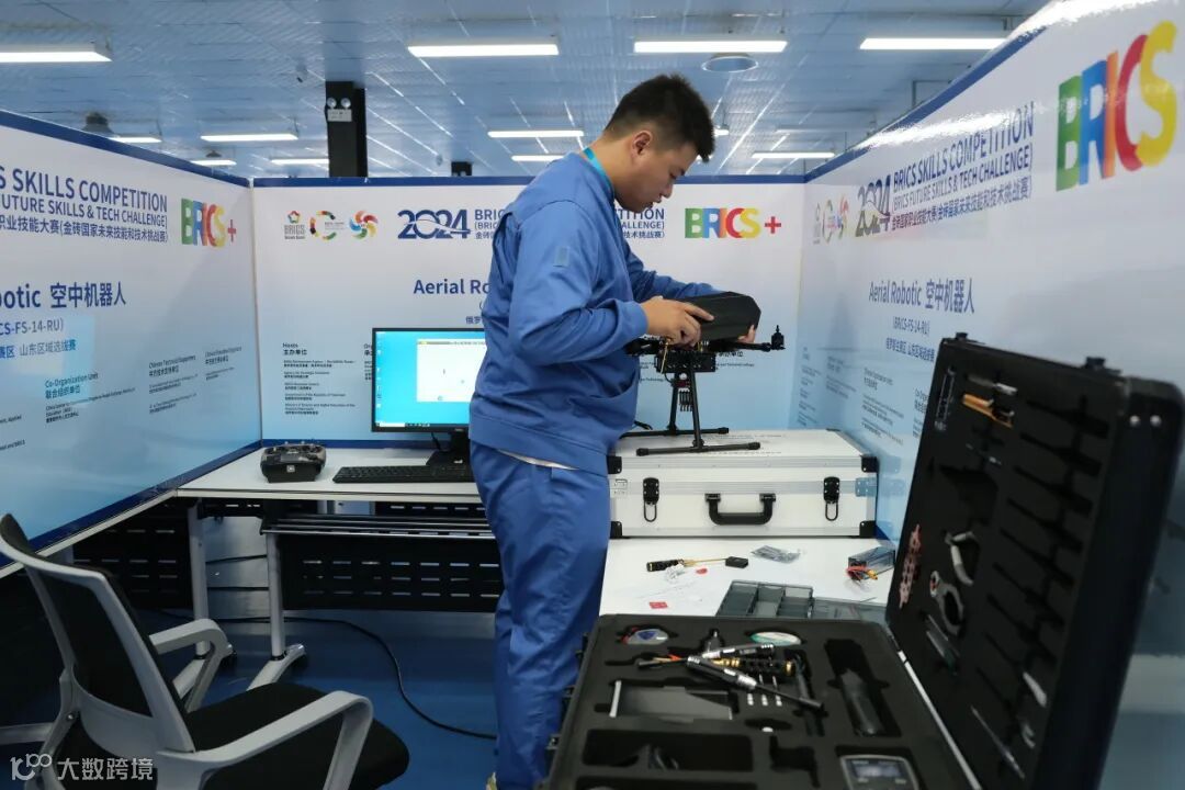 空中机器人赛项作为本次大赛的重要组成部分,吸引了来自金砖国家众多技术能手的参与。赛项精心设计了三个核心模块,旨在全面考察参赛选手在无人机领域的多方面能力。这三个模块分别是无人机组装、空中机器人操控,以及无人机人工智能应用。