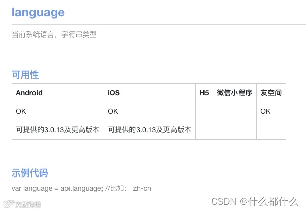 在实际业务中,根据产品需求,有可能在 App 应用中,显示的提供语言切换按钮,像本次 App 这样。也有可能直接获取手机操作系统的本地语言,然后 App 进行动态的适配。原来大致都是一样的,获取操作系统的本地语言,可以使用引擎提供的 api.language 方法。