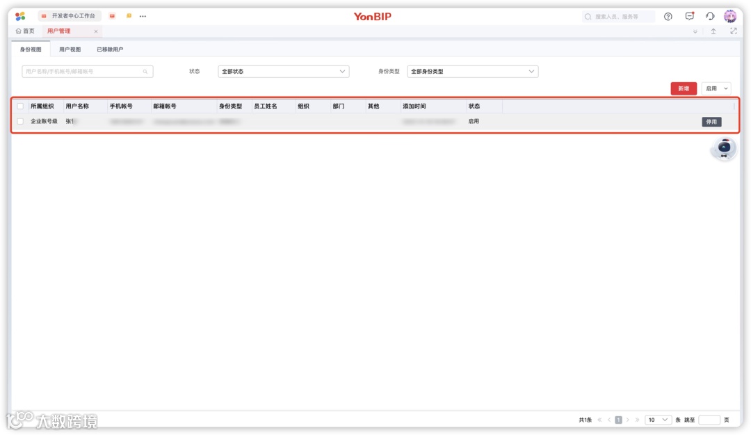 团队成员添加成功之后,可在用户管理界面列表中进行查看管理。