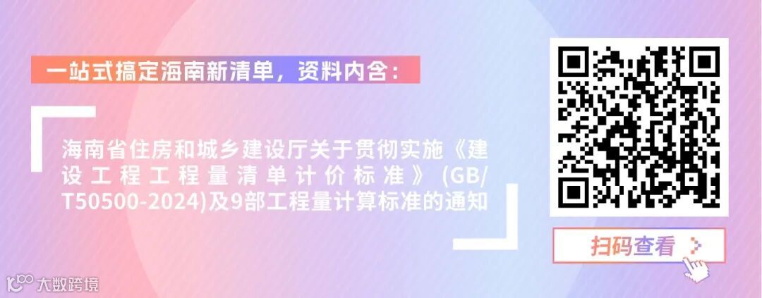 海南省住房和城乡建设厅发布了,关于贯彻实施《建设工程工程量清单计价 标准》(GB/T50500-2024)及9部工程量计算标准的通知,内含《2024版计价标准的实施说明及附录》及《增补的分部分项工程清单与措施项目》。