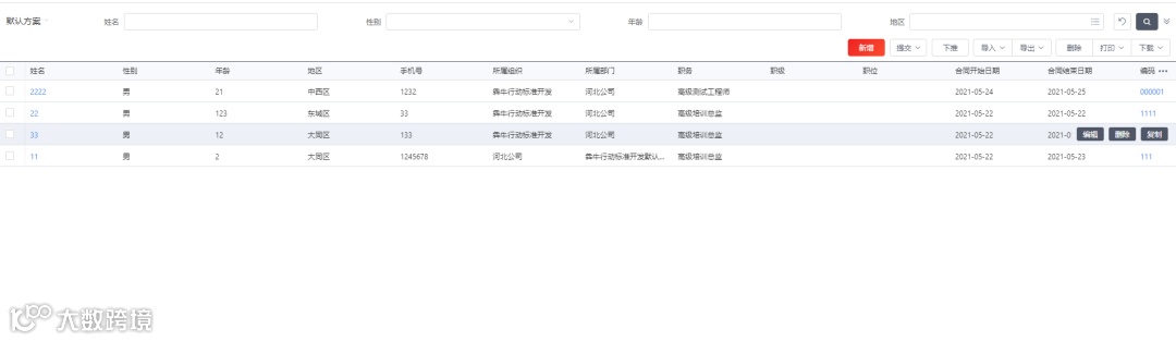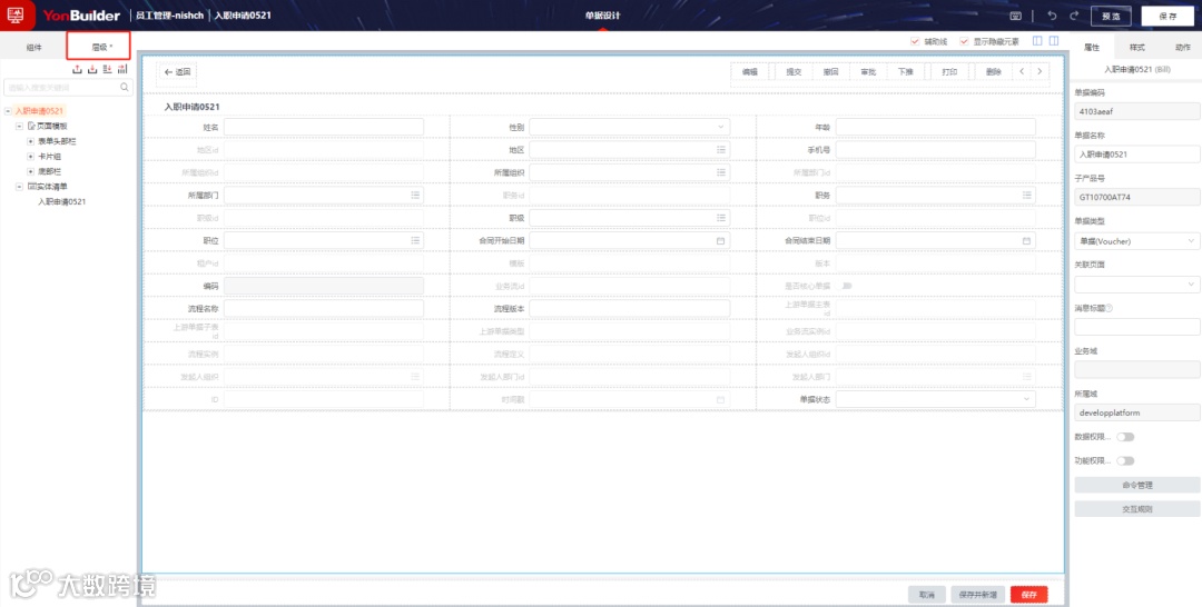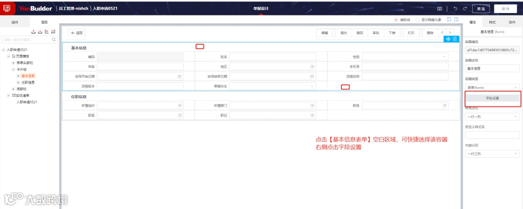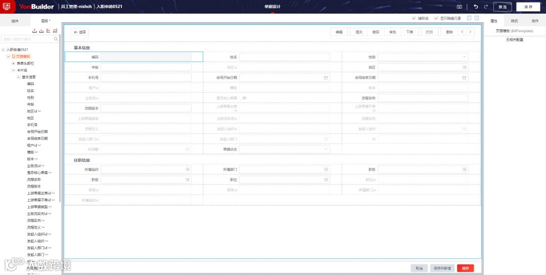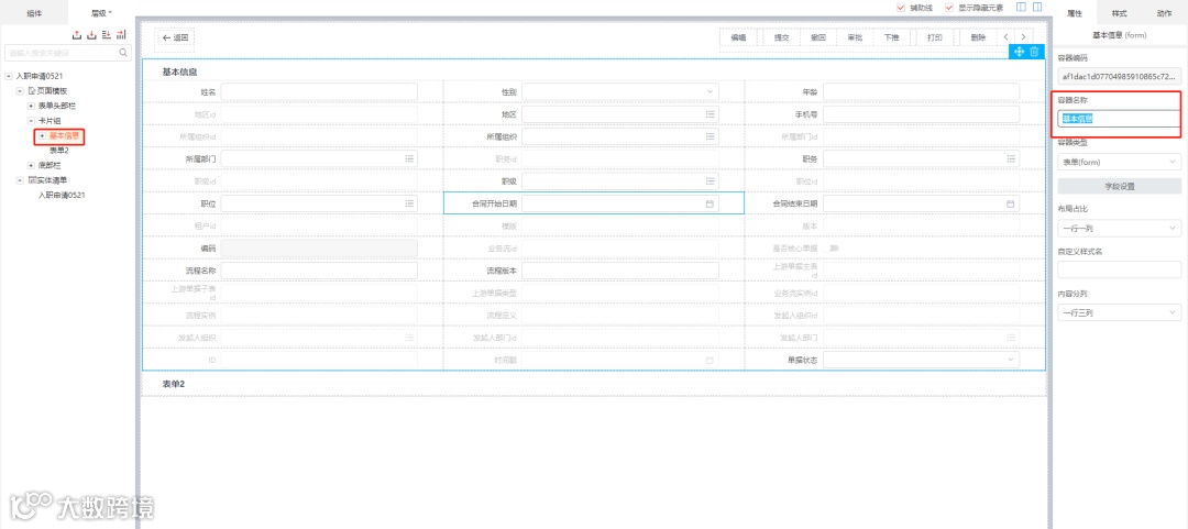拖拽操作台基础控件至各个表单容器内,形成以下布局