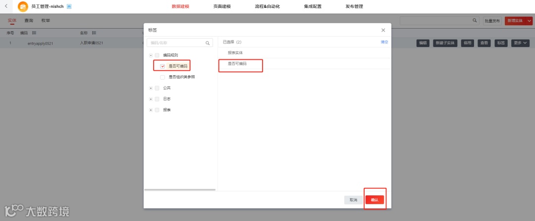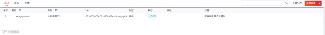 引用接口中勾选自动编码,填写后点击保存,确定没有问题,列表页发布实体