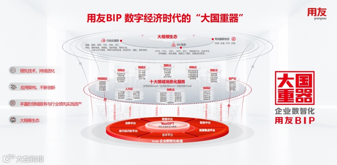 新时期,用友将在企业使命的指引下,承载起引领中国软件产业蓬勃发展的重任,通过普及用友BIP,服务中国和全球企业的数智化转型,加快培育新质生产力、发挥数字经济优势、实现高质量发展提供全面助力。