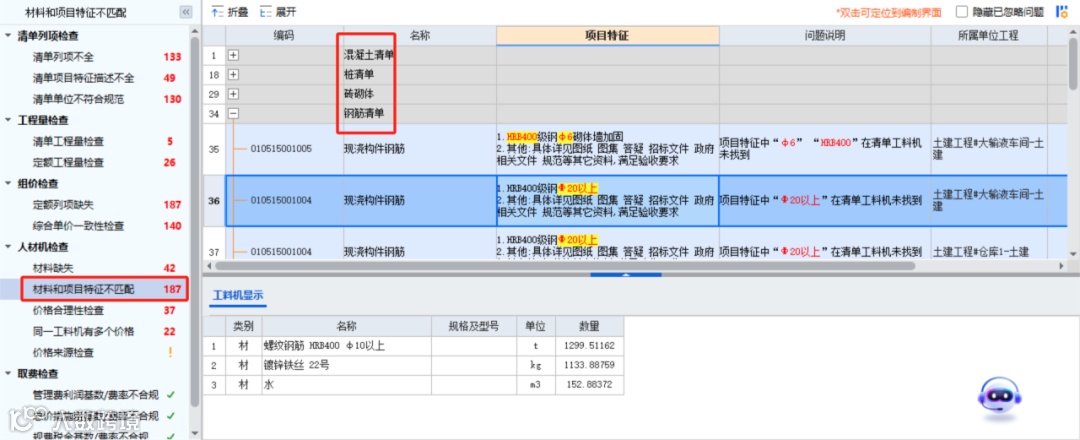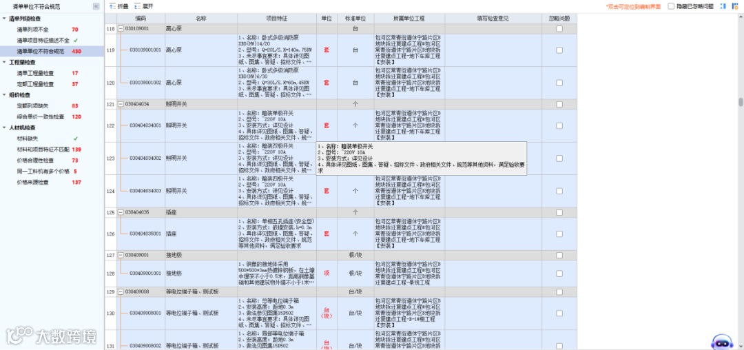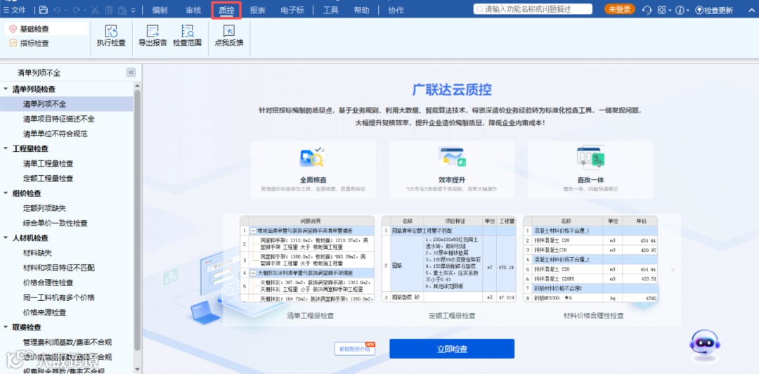 质控指标检查,打通对比内外部数据壁垒,保障项目造价合理性。