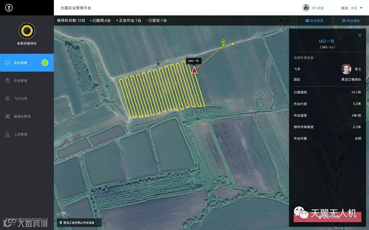 同时我们还为植保队伍的管理者提供了先进的大疆农业管理平台