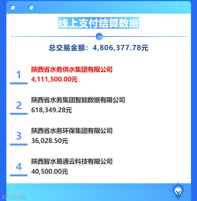 2022年3月,陕西省水务集团智水易通电子采购交易平台共完成交易49笔(商城交易48笔,询价采购1笔),环比2月交易量增加245.00%。总交易额3,418,893.67元(商城交易2,892,093.67元,询价采购交易额526,800.00元),环比2月交易金额增加56.97%,线上交易结算笔数30笔。新增供应企业入驻51家,采购企业入驻25家。