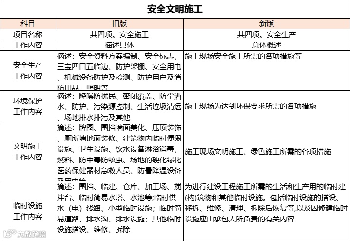 (1)旧版有“超高施工增加”,新版无。超高施工增加一般应综合到相应的分部分项及措施项目中,比较合理。