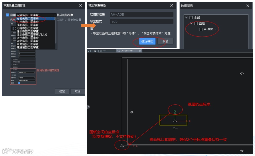 ②视图里的坐标要与图纸中坐标保持对齐,导出后图模一致才能自动关联。