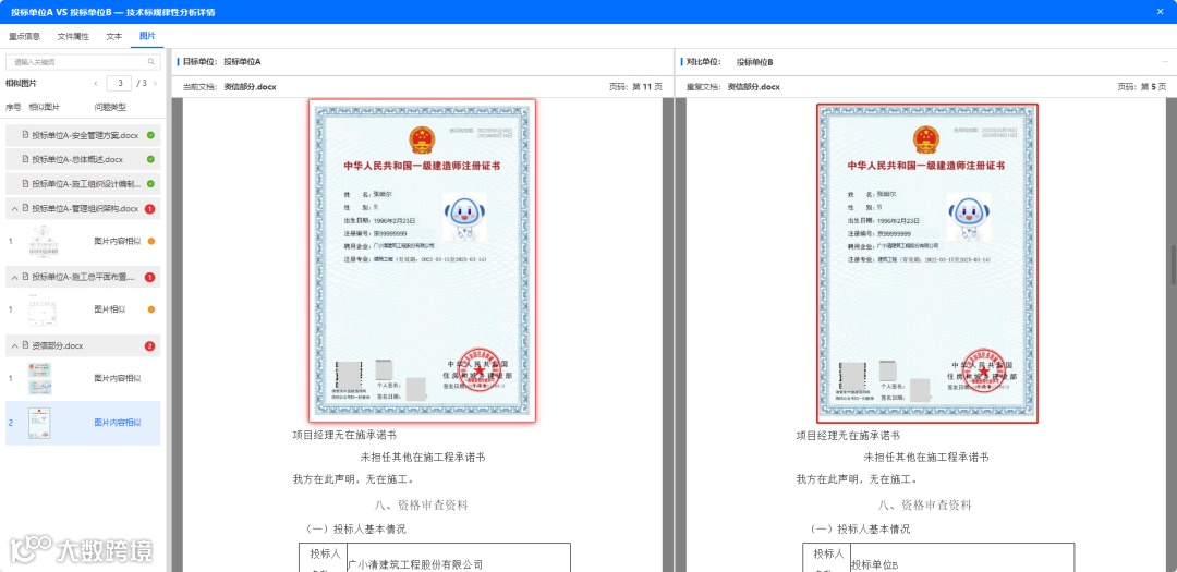 基于图片OCR识别及AI智能重点信息识别,检查文件属性、文本、图片、图片内文字、公司及人员类重点信息重复。