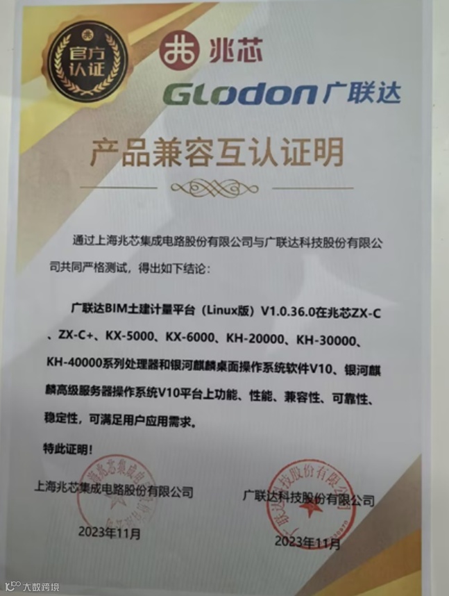 广联达现阶段已经完成市面主流操作系统银河麒麟,处理器龙芯、飞腾、兆芯的认证,保障产品可以自由适配硬件和软件系统。