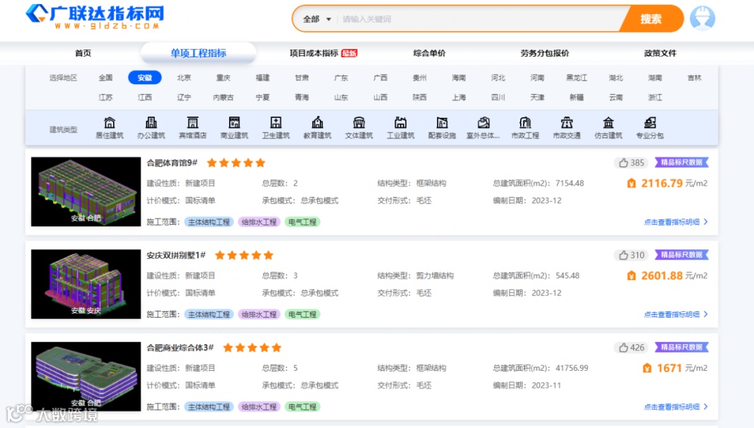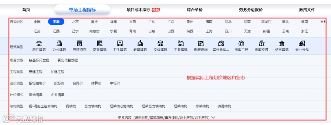 ②覆盖业态多:数据涵盖房建、医院、教育、商业、市政、文体等15大业态;