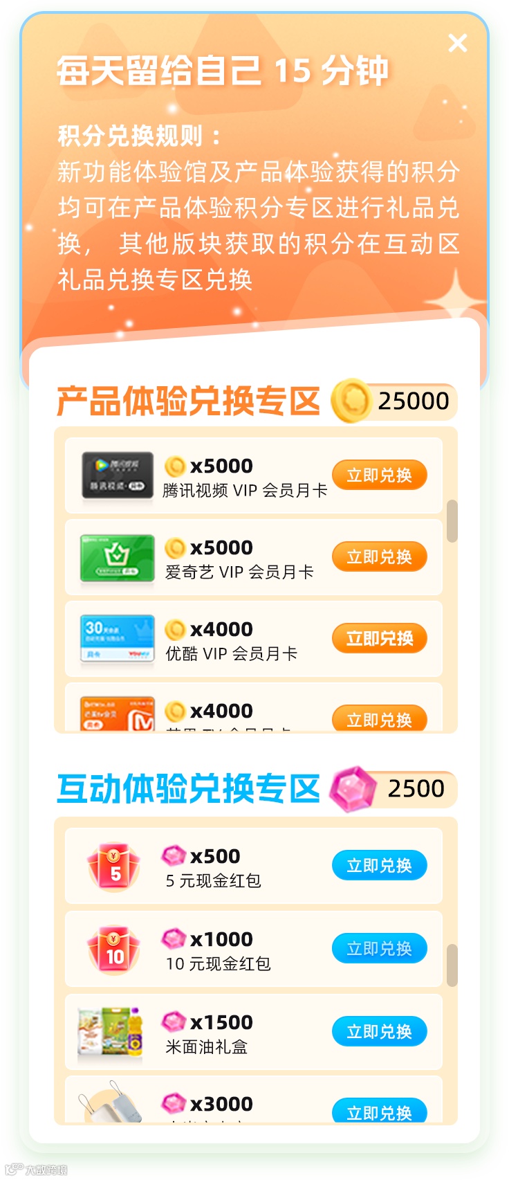 获得的积分无需等待,可以实时兑换!100%的现金和实物奖励!每天留给自己15分钟休闲放松一下吧
