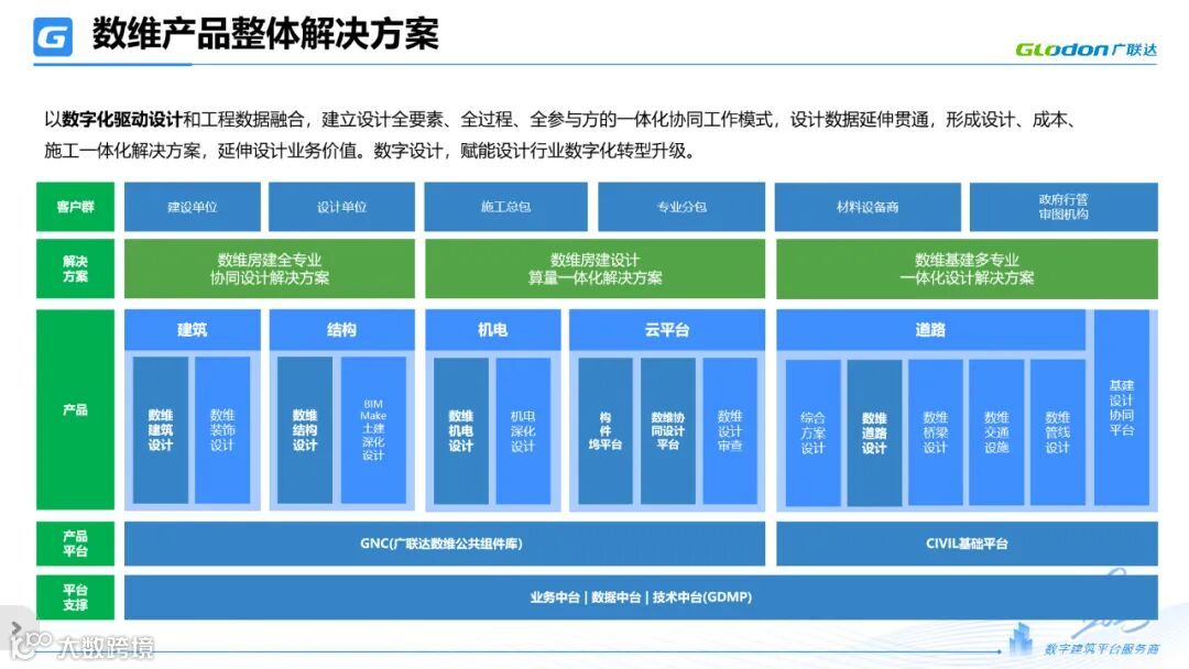 数据驱动的一体化设计解决方案,为全过程数字化建设筑基。2022年,广联达发布数维设计产品集。该产品集以自主知识产权图形平台为基础打造,是全专业BIM正向设计解决方案型产品。广联达华南总部基地采用数维设计软件及协同平台,通过“云+端”协同模式,实现从方案、施工图、到深化阶段的建筑、结构、机电等专业的BIM正向设计及多专业协同,实现设计-算量-施工各阶段模型和数据的流转,通过设计模型与算量模型无缝对接,建立各阶段设计与成本的匹配映射,实现从设计源头的成本把控。