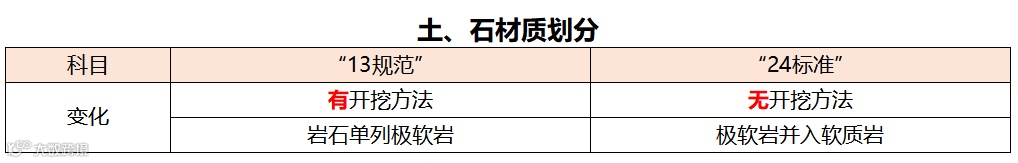 “24标准”按照单独土石方和基础土石方、场地平整及其他进行大类划分;“13规范”按照土方、石方和回填进行大类划分。对于成本结算没有实质性影响。