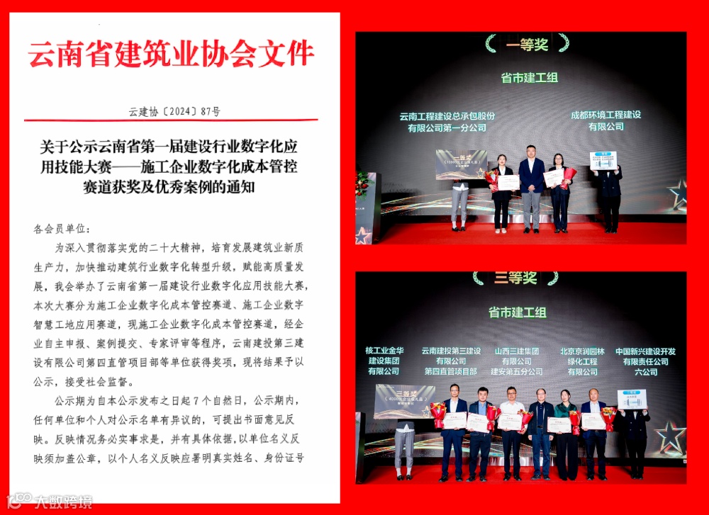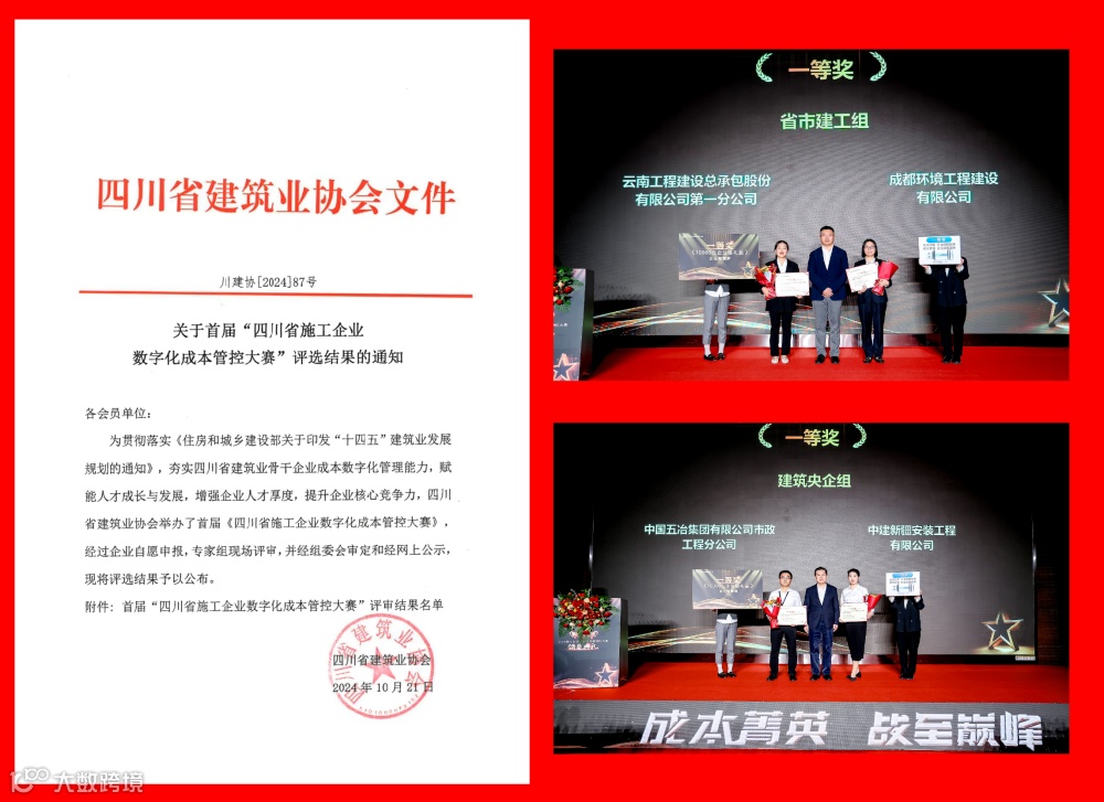 近日,首届施工成本管控数字化大赛(以下简称“成本大赛”)总决赛及颁奖仪式在北京顺利举办。本次成本大赛旨在展示施工企业在成本精细化管理方面的最新成果,推动行业共建赛事平台、共享大赛成果,共同探索和实践数据驱动的精细化成本管理新模式,这也是首次促进企业展现成本管控精细化、数字化多样性和创新性的全国性专业赛事。在大赛征集案例、专家评选及颁奖过程中,吸引了众多行业协会、施工企业、权威媒体的关注。