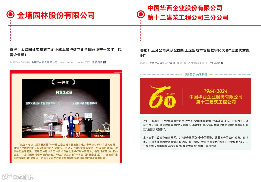 在赛事期间,中国建设报、中华建筑报、建筑杂志社、建筑时报、中国基建报、新华财经、中国网、中国经济新闻网、中国城市新闻网、中国城市建设网、中华建筑网等多家行业权威媒体及主流媒体对成本大赛进行了全面且深入的报道。这些报道不仅涵盖了赛事的评比过程、获奖名单公布及颁奖典礼等重要环节,还体现了行业热点、企业风采及参赛选手的个人感言。