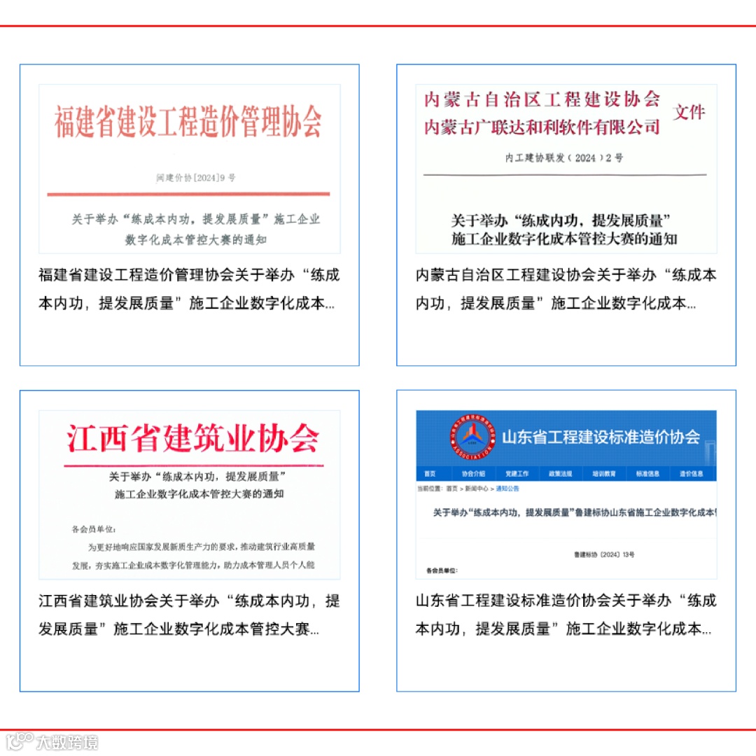 本次活动得到了全国20余家行业协会的支持与指导,各协会对于本次活动的高度重视和积极认可使得更多的施工企业了解、参与成本大赛。
