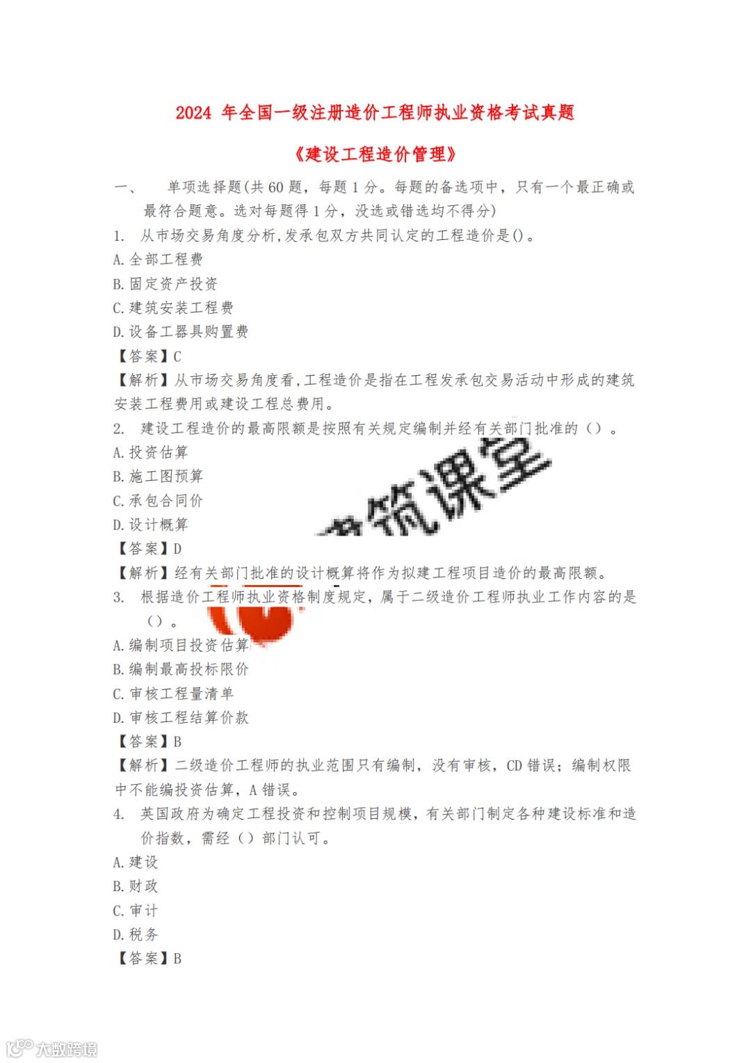 以下是我们最新收集到的一造真题更新版真题。大家可以先自行估分了,也记得分享给小伙伴一块看~