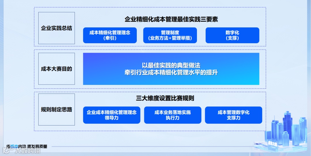 决赛阶段参赛队伍遴选,由专家组委会评比各组别全国TOP10案例,进入线下全国总决赛,其余未入选案例获得“全国优秀案例奖”。决赛评选,分别设置每个组别一等奖2名共6名,每个组别二等奖3名共9名,每个组别三等奖5名共15名。成本大赛组委会将在中关村数字建筑绿色发展联盟公众号、大赛官网、广联达官方账号对以上获奖名单进行公示,公示期为9月24日-9月26日3天。经公示未发现异议后,大赛组委会将于9月27日正式公布成本大赛赛区赛案例获奖名单。