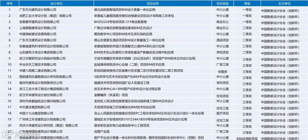 广联达数维房建BIM设计项目获奖情况(点击查看大图)