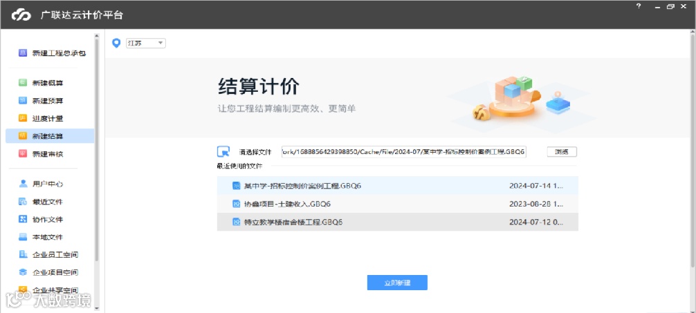 第一种,在平台界面,选择新建结算,直接把合同文件转为结算计价;