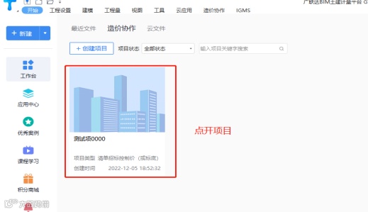 (1)项目成员均可在GTJ端点击项目,进入项目: