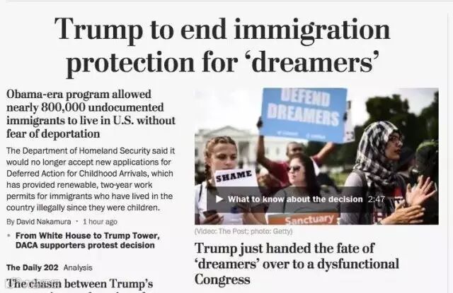 《纽约时报》报道称,即日起美国政府将不再接受任何来自无证移民的新申请,但 DACA 计划的受益人在明年 3 月 5 日之前并不会受到任何影响。