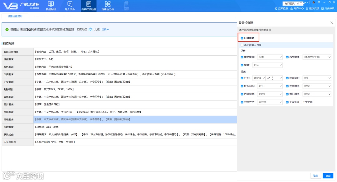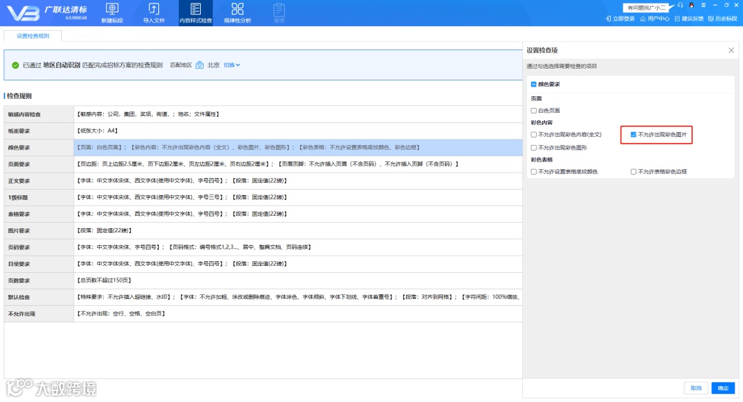 三、暗标格式检查规则新增【章节编号、目录、表格边框、页眉页脚、彩图】检查