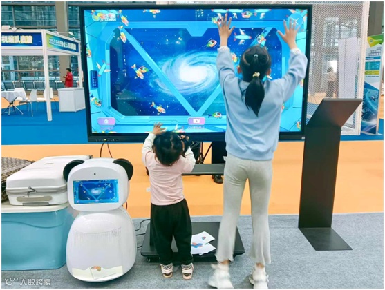 AI互动投影一体机:融合AR体感交互技术,可将人体动作转化为飞行指令,实现沉浸式飞行模拟体验;依托AI大模型,支持将用户航空创意一键生成绘本、绘画、故事等作品……