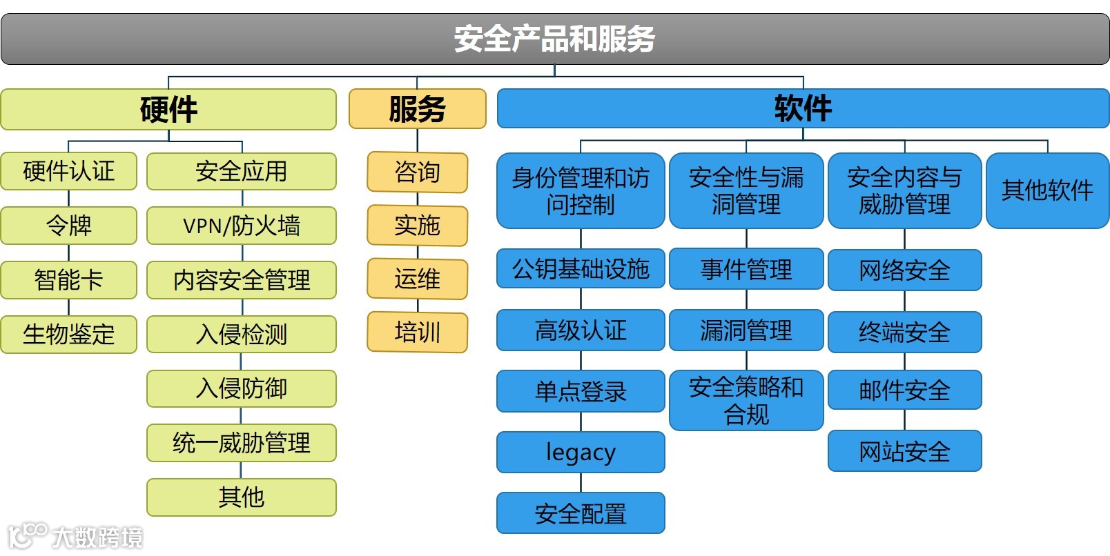 从产品维度看,信息安全市场可分为安全硬件、安全软件和安全服务三大类,十二小类,约百余种产品。