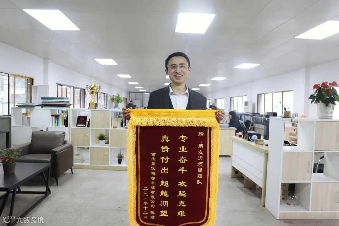 在分享会上,重庆用友U9项目团队再次获得了客户领导的高度认可和一致好评,项目团队的专业能力和丰富的行业经验是川仪精密信息化工程顺利开展的关键,实施人员在项目中展现出的工作态度和项目管理能力让客户由衷的赞扬。我们用行动证明了,对于信息化和数智化的建设,用友是一个明智且高性价比的选择。基于对用友团队的认可和超出预期的验收成果,川仪精密领导层特别赠与重庆用友U9项目团队一面锦旗。