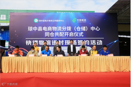 为打通农村物流快递进村“最后一公里”,方便群众寄递,提升服务水平,持续统筹建设琼中黎族苗族自治县、乡(镇)、村三级“快递进村”共配体系。2023年2月24日,由琼中黎族苗族自治县商务局、县交通运输局、海南省中部邮政管理局共同主办的“琼中黎族苗族自治县电商物流分拨(仓储)中心同仓共配开启仪式暨快递物流进村现场签约活动”,在县电商物流分拨(仓储)中心举行,助推琼中物流打通“最后一公里”。