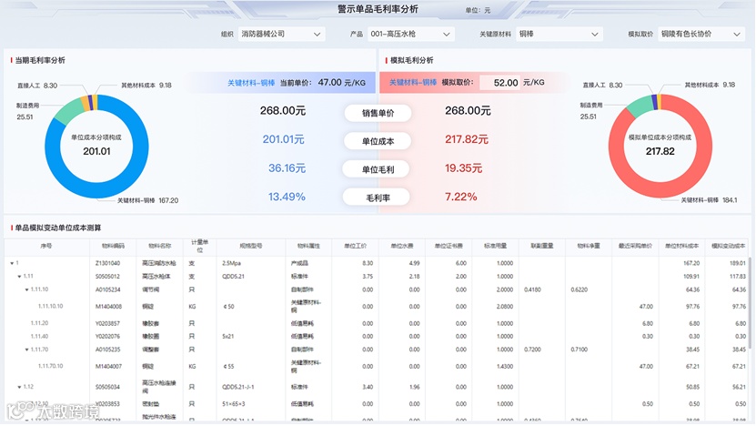智能成本监控能基于原材料成本变动分析毛利变动。智能成本优化则能进一步根据主材价格变化,有效分析毛利,即便在竞争激烈、上游客户要求严格导致可能亏损的情况下,也能计算出不同批量下的收益情况。此外,智能成本还能模拟订单毛利绩效和边际收益,进行有效计算。
